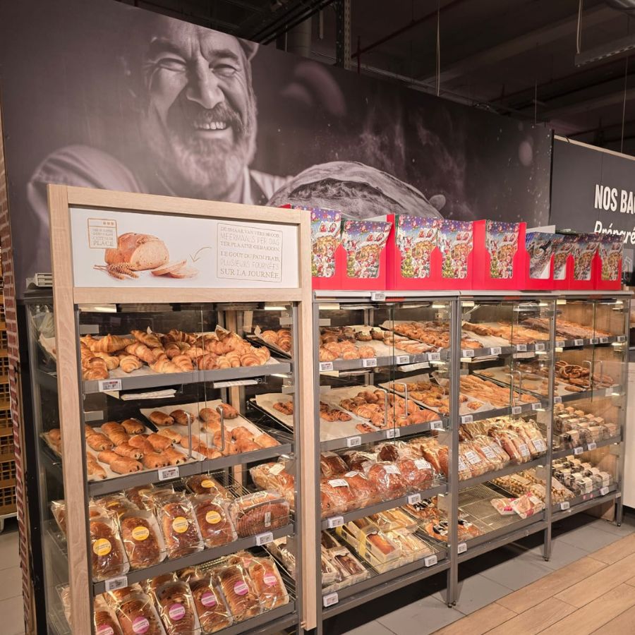 Delhaize Wezembeek, un supermarché avec plusieurs ateliers: rôtisserie, boucherie, boulangerie, charcuterie, …